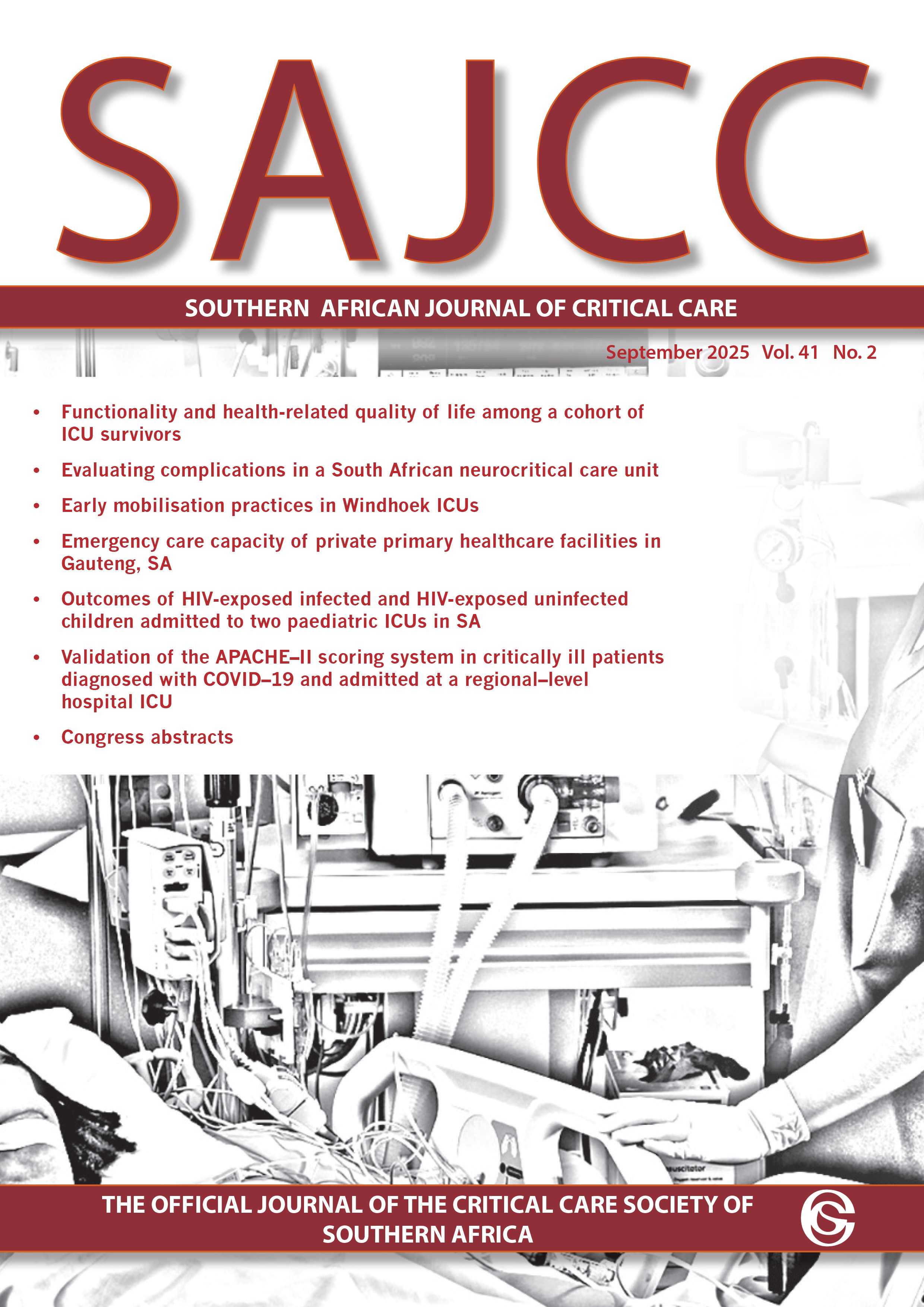 The Southern African Journal of Critical Care is the official journal of the Critical Care Society of Southern Africa.