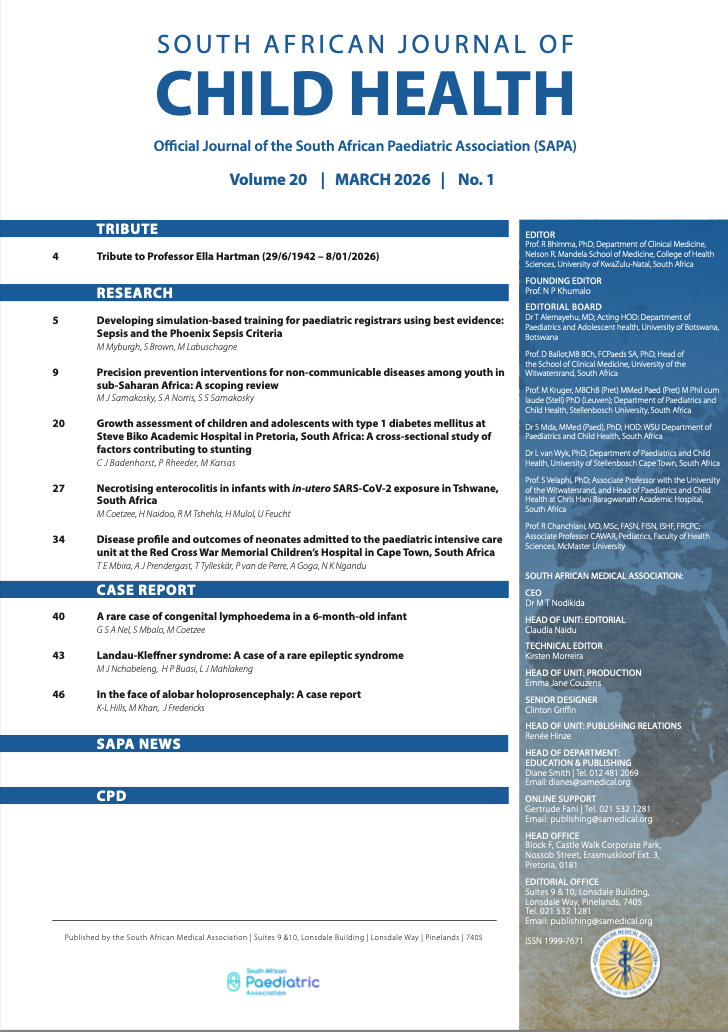 The SAJCH is published under an Attribution-Non Commercial International Creative Commons Attribution (CC-BY-NC 4.0) License. Under this license, authors agree to make articles available to users, without permission or fees, for any lawful, non-commercial purpose. Users may read, copy, or re-use published content as long as the author and original place of publication are properly cited.